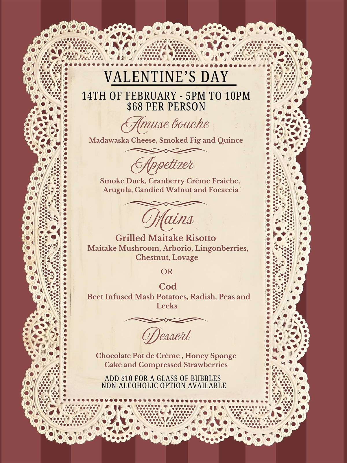 | Dill Vodka/Worcestershire/Sriracha/lemon/Walter Caesar mix/red wine/charcuterie | |